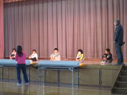 体育館からエコーのかかった声のアナウンスが聞こえてきました。3組の学芸会の練習です。