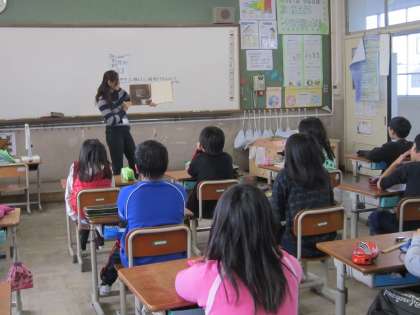 図書支援員の先生の4年生への読み聞かせは,「王さまのライオンケーキ」という本でした。お話の中に分数が出てきます。子どもたちも「数」をイメージしながら,お話を聞いていました。