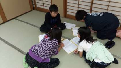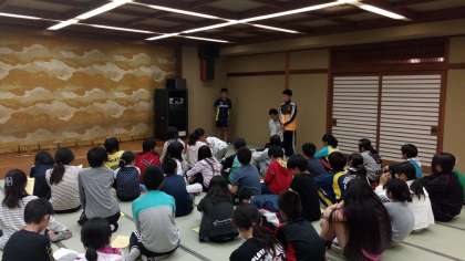 レクリエーションの後に、反省会を行いました。グループのリーダーが代表で、今日の反省と明日の目標を発表しました。明日の目標としては、相手に伝わる挨拶や一般の方の迷惑にならない行動をすること、グループで仲良く行動することなどがあがりました。明日は今日よりも集団として高まれるよう、頑張ります。