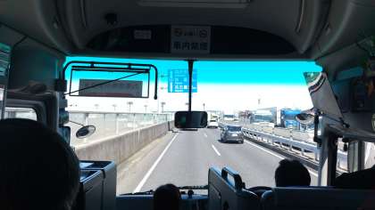ホテルでの出発式を終え,今,名古屋城に向かっています。高速道路の渋滞で,予定より到着が遅れそうです。