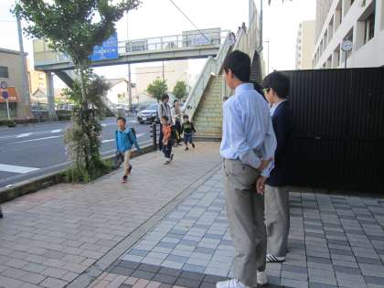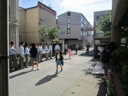 普段より30分も早起きしたという中学2年生。レベルアップウィークの今週,様々な企画をしているそうです。その1つとして取り組んでいる「あいさつ運動」では,昨日に続き,小学生や道往く人に気持ちの良いあいさつを届けてくれました。