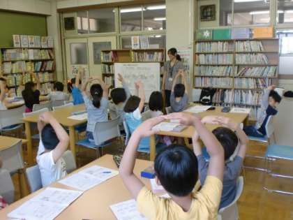 図書館司書教諭による,図書室のオリエンテーションをしました。図書室での過ごし方のルールや図書室にある本のラベルの説明などを教えてもらいました。