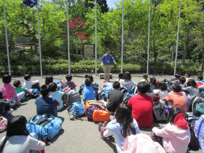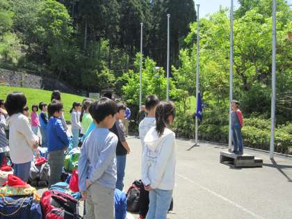 山の家の職員の方に出迎えていただき,入所式がスタートしました。