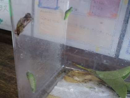 何日ぐらいでチョウになるのかなぁ・・・と楽しみにしつつ,今度は卵を探してきて育てたいなぁということになっています。3年生の教室は,これからしばらくこん虫育てで,たくさんの発見や驚きがありそうです。