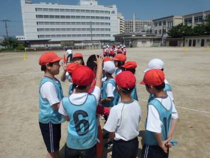 体育科でリレーをしています。バトンパスも上達してきたので,今回はチームの中で相談をして走る順番を決めました。一人一人走りたい走順があったので,話し合いは少し時間がかかりましたが,なんとか自分達で納得して決めることができました。さてさて,結果はというと・・・。1秒縮まったチームもあれば,逆に1秒遅くなってしまったチームもありました!悔しそうな表情を浮かべる子どもたちでした。次こそは新記録更新目指して頑張りましょう!