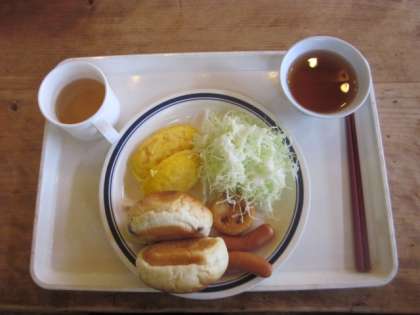 3日目の朝食の様子です。食堂に着いた子どもたちは,先生がいなくても自分たちで手を洗い,静かに列に座っていきました。さすがです。