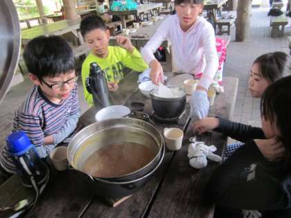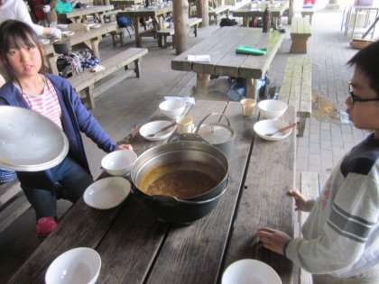 おいしいカレーが出来上がりました。8班ともそれぞれに味に個性のあるカレーをつくっていてみんなおいしかったです。