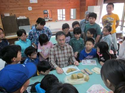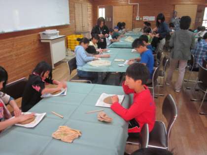 そして,いよいよ最後の活動「花背焼き」です。講師の先生にていねいに指導していただいて子どもたちも楽しそうに取り組んでいました。素手でさわる土の感触が気持ちよかったと思います。どんな作品ができあがるのか,楽しみにしておいてください。