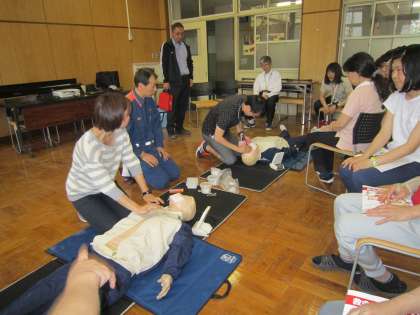 5月も残すところあとわずかとなりました。6月中旬になれば,いよいよプールが始まります。それに先立ち,消防署の方に講師として来ていただき,教職員が救命救急講習を受講しました。お話を聞いた後,実際に心肺蘇生法を体験しました。尊い命を守るため,救命の連鎖の中で自分は何ができるのか考え,行動することの大切さを学ぶ機会となりました。