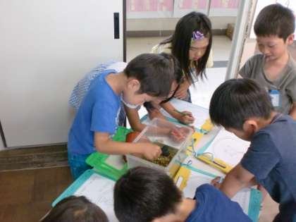 めだかや金魚,ザリガニ,ダンゴムシ,アゲハチョウのたまごなど,たくさんの小さな生き物と,これからも学習していこうと思っています。