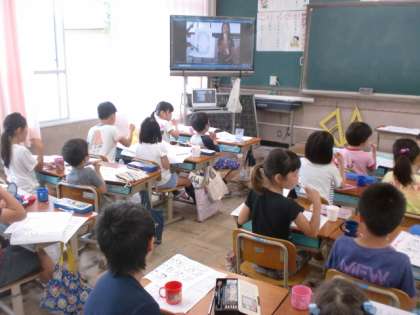 赤く染まった歯に驚きながら,正しい歯磨きを九条塔南小学校保健委員会のみなさんが作ってくれた映像を見ながら学習しました。