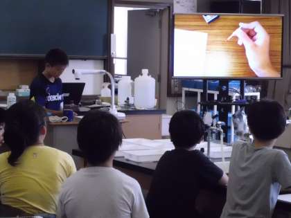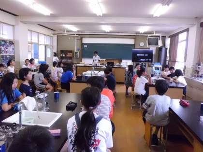 子どもたちは,初めての中学校施設に興味津々。また,初めて出会う九条弘道小の友達に少し緊張気味でしたが,2時間も一緒に学習すると,笑顔で話す様子が見られました。