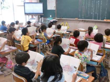 国語科で「スイミー」を学習しています。子どもたちは上手に音読をしています。日々の音読の積み上げが感じられます。