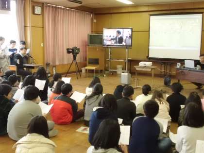 講師の方には,記者として海外に赴任した際の,貴重なお話もしていただきました。普段は聞くことのできないお話に子どもたちは,興味津々に聞き入っていました。