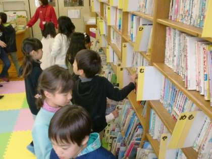 図書委員さんの説明を聞いて,本探しがスタート。図書室へよく本を借りに行っている子どもたちは,何の迷いなく,お目当ての本のある本棚に直行していました。