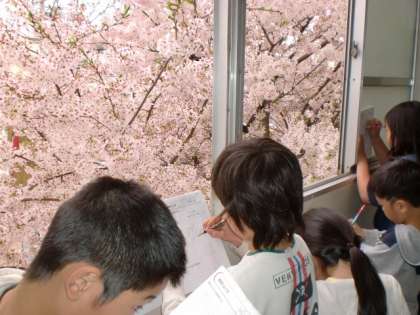 桜と言えど,数多くの種類があり,塔南小学校の桜は何という名前だろうかと問いかけ,花の色や形,花びらの枚数に注目して,観察しました。