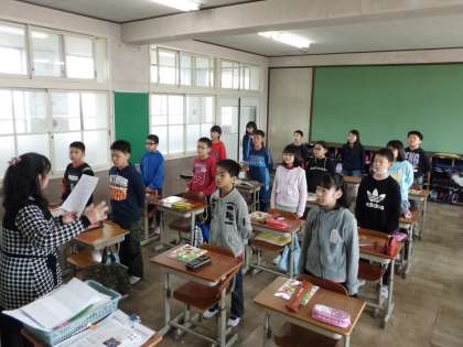 今日の音楽科の学習はドキドキです。それもそのはず,今年着任された先生との授業だからです。