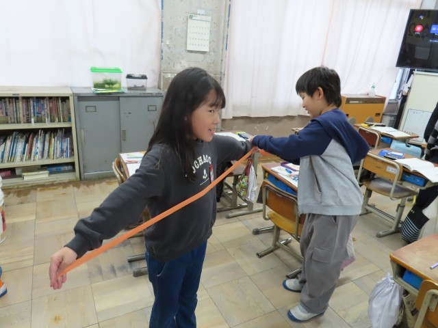 今週から算数科では「100㎝をこえる長さ」について学習を進めています。
