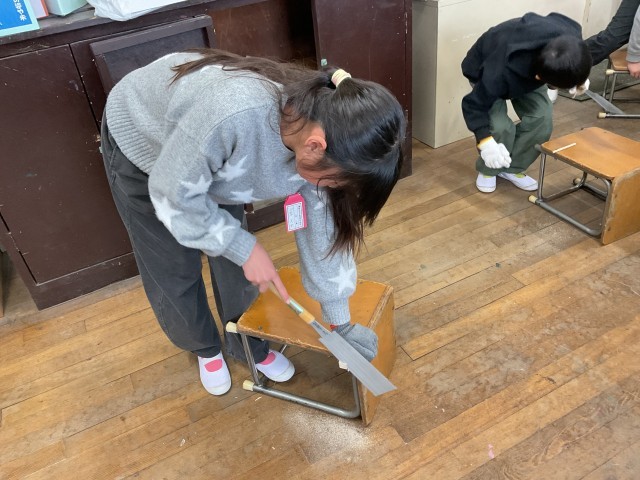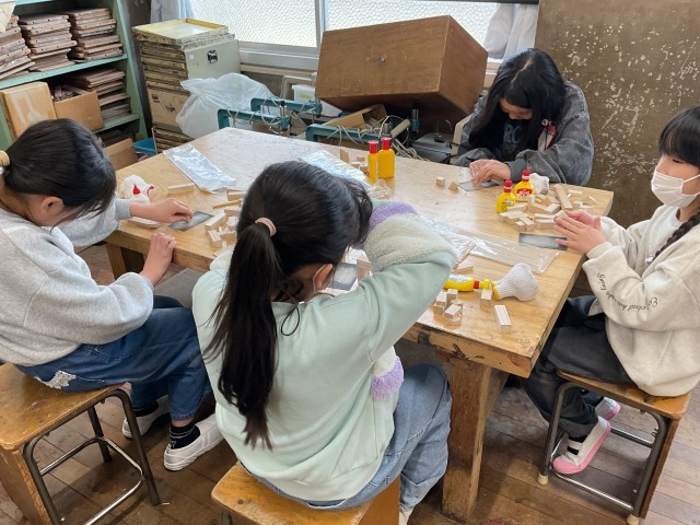 ノコギリを使って切った木材を組み合わせて作品を作っています