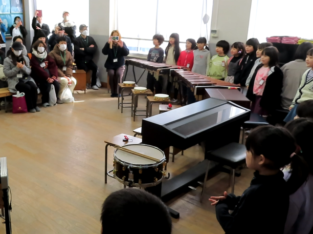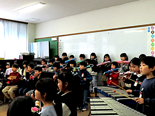 子ども達は斉唱で「青い空に絵をかこう」を歌い、合奏で「小さな世界」を演奏しました。昨年12月の末から少しづつ練習に取り組み、その成果を存分に発揮することができました。