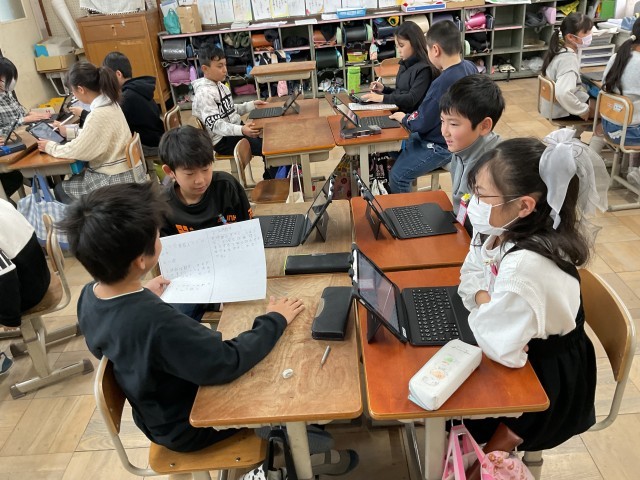 情報モラルの学習で、「思ったままSNSに投稿しても良いのか」について動画を視聴して、自分の考えたことを交流しました。