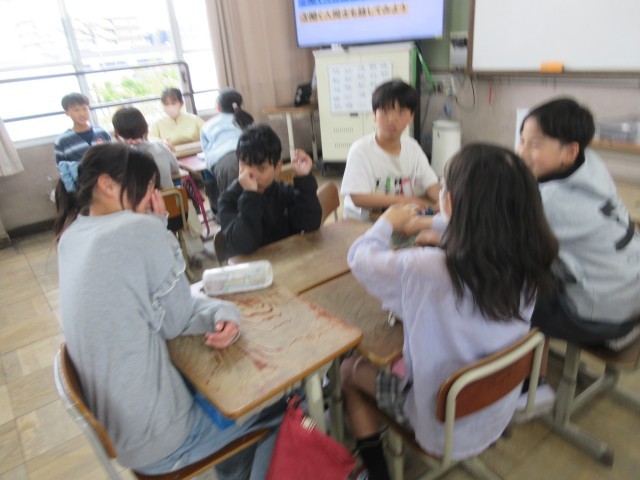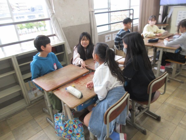 国語の最初の学習でした。グループで質問をし合いながら、ひみつの言葉を引き出しました。いろいろな話題を出しながら、話を盛り上げていました。
