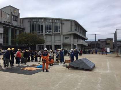 南大内の防災訓練が行われました。小学生も参加して,初期消火訓練等を行いました。この機会に,災害が起こったらどうすればよいのかを家族で話し合ってください。
