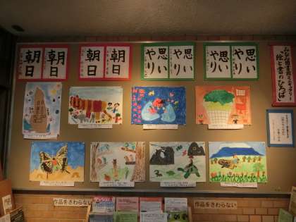 南図書館の玄関に南大内の子ども達の作品が掲示されています。