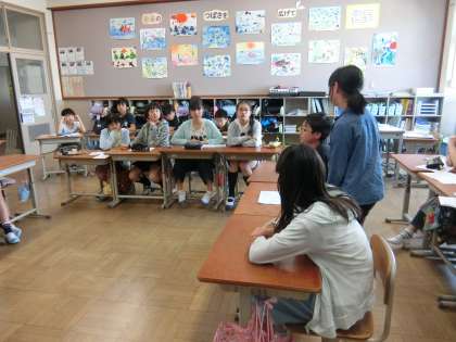 「夏休みに行くなら海よりも山がよい」という話題で,肯定と否定に分かれて討論をしました。