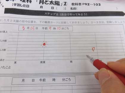 次の月の形や位置はどのように変化しているかな。楽しみですね。