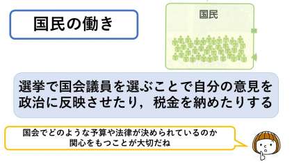 さて,今日は前回の予習プリントで配った【6年 社会 「国の政治のしくみと選挙(1)」】の「国民・国会・内閣の働きを調べよう」という学習についてまとめました。