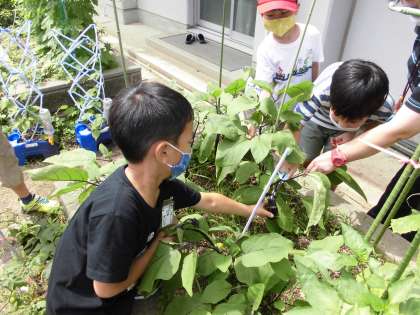 久しぶりに晴れ間があったので,野菜の収穫やお世話をしに行きました。大きなキュウリやナス・ピーマンもたくさん育っていました。