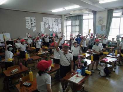 今日は中学年体育大会の応援に来てくださってありがとうございます。本番前,教室で「がんばるぞー!!おー!!」という掛け声で気合を入れました。