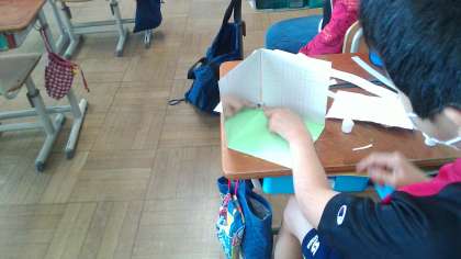 鏡面にうつる面白さを生かして作っていきます。鏡の像がおもしろい動きに見えたり,奥行きがあるように見えたり,どんなアイディアが浮かぶか楽しみです。