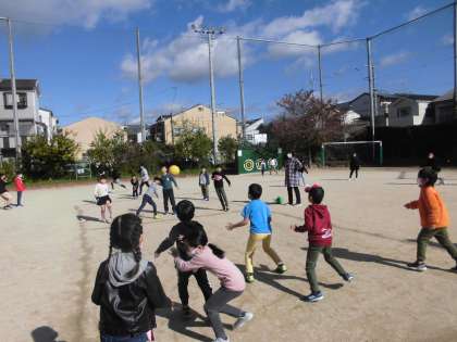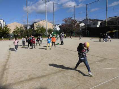 毎週火曜日は,みんなあそびでドッジボールをしています。今週も良いお天気の中,白熱した戦いを繰り広げていました。