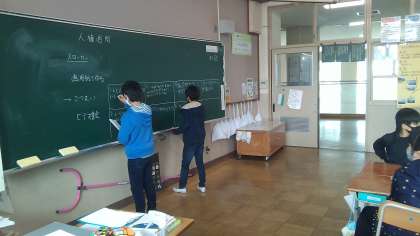 もうすぐ,人権週間です。みんなの良さを生かして,友だち大切にできるクラスにするために,スローガンを話し合いました。「ありがとうの言葉かけ」「差をつけない」「かかわりを大切に」など,たくさんのキーワードが出てきました。みんなの心で考えている気持ちを話し合い,優しい言葉がとびかう教室は,とてもあたたかい気持ちになれました。