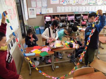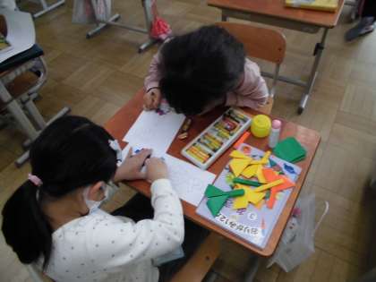 生活科の学習で,かざりを作ったり,看板や招待状を作ったりと,1年生をむかえて「うきうきおもちゃパーティー」をするための準備を頑張っています。