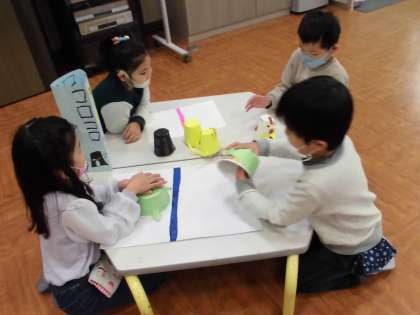 みんなで準備して,楽しみにしていた「うきうきおもちゃパーティー」。1年生を招待して,自分たちの作ったおもちゃで遊んでもらいました。遊び方を説明したり,コツを教えてあげたり,やさしく1年生に接している姿が見られました。