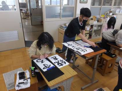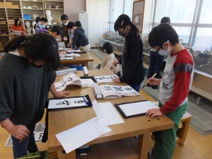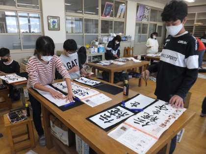 書写の時間に「書初め」ではなく,年末に書くということで「書き締め」に取り組みました。いつもとは違う画仙紙に強くて太い字をしっかりと書くことができ,子どもたちも嬉しそうな表情でした。