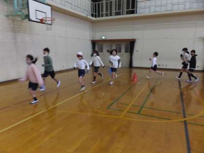 今日からかけあしタイムが始まりました。初回の今日はあいにくの雪で,運動場の状態が悪く,体育館での取組となりましたがみんな一生懸命走っていました。体力向上とともに,自分の記録にも挑戦していってほしいと思います。