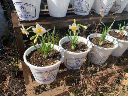 11月に人権の花集会に参加した時にいただいたスイセンの球根が芽を出し,ついに花が咲きました。とてもきれいな真っ白の花が咲き,子どもたちはとても喜んでいます。暖かい春の訪れを少し感じさせるできごとでした。