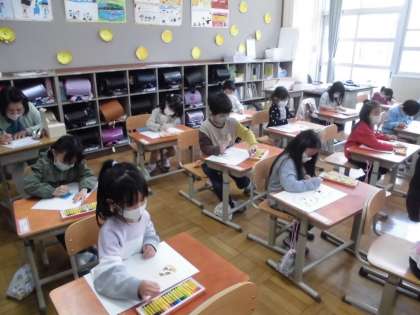 図画工作科では,一人一人がかきたいものをクレパスでかきました。