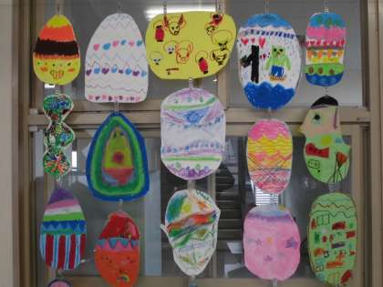 どんな形かな?どんな色かな?と想像をふくらませながら,「ふしぎなたまご」を描きました。