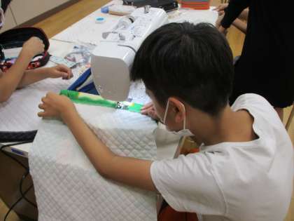 5月から頑張って作ってきたナップザックの完成が近づいてきました。完成した子も出てきました。完成した子は,作業の手助けをしたり,次の工程を教えてあげたりして,みんなで早く完成するようにがんばっています。