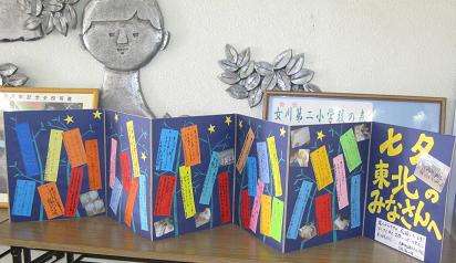 女川町の避難所には,まだたくさんの方々が暮らしていらっしゃいます。遠く離れていても,自分たちにできることはないか,子どもたちは考えています。