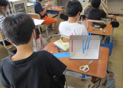 図画工作では,動く仕組みを使ったおもちゃ作りをしています。ペンチで針金を曲げてクランクを作り,箱の中でクルクル回せるような仕組みを作ります。うまく動くようになった子は,飾り作りに取り組んでいます。どんな作品が出来上がるのか楽しみです。