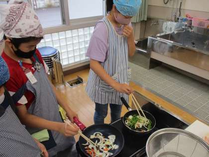 家庭科「朝食から健康な一日の生活を」の学習で,調理実習を行いました。にんじん,玉ねぎ,ピーマン,ハムを使った「いろどり炒め」を作りました。炒める調理が初めての子もいましたが,グループで協力してスムーズに調理を進めることができました。