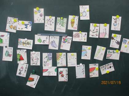 もうすぐ夏休みです。遠く離れている親戚や,普段から感謝の気持ちでいっぱいの家族に気持ちを込めて暑中見舞いを書きました。