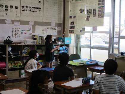 理科の時間に自由研究の発表会を行いました。掲示してある模造紙を指したり,レポート用紙を提示したりしながら発表しました。友達の良かったところなどをメモを取りながら聞きました。良かった人に投票をして,ノーベル賞など決めていくようです。楽しみです。