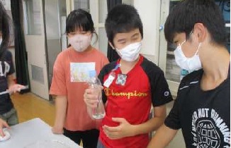 理科の「水溶液の性質」の学習で,炭酸水について調べました。炭酸水を振った時に出てくるあわは何なのかを調べるために,いろいろな実験をしました。炭酸水をあたためたらどうなるか,あわを石灰水にとおしたらどうなるかなどの実験をして,炭酸水のあわの正体は二酸化炭素だということが分かりました。水溶液に気体が溶けているということが分かり,子どもたちは驚いていました。